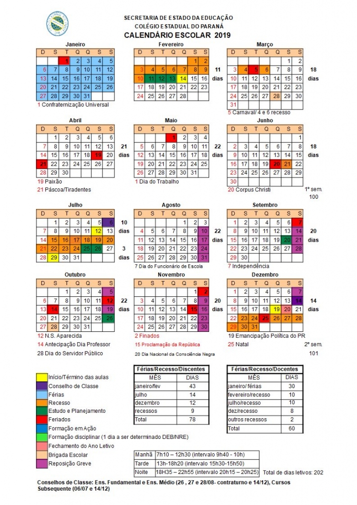 ANO LETIVO: Calendário Escolar 2019 04/10/2019 - 17:30