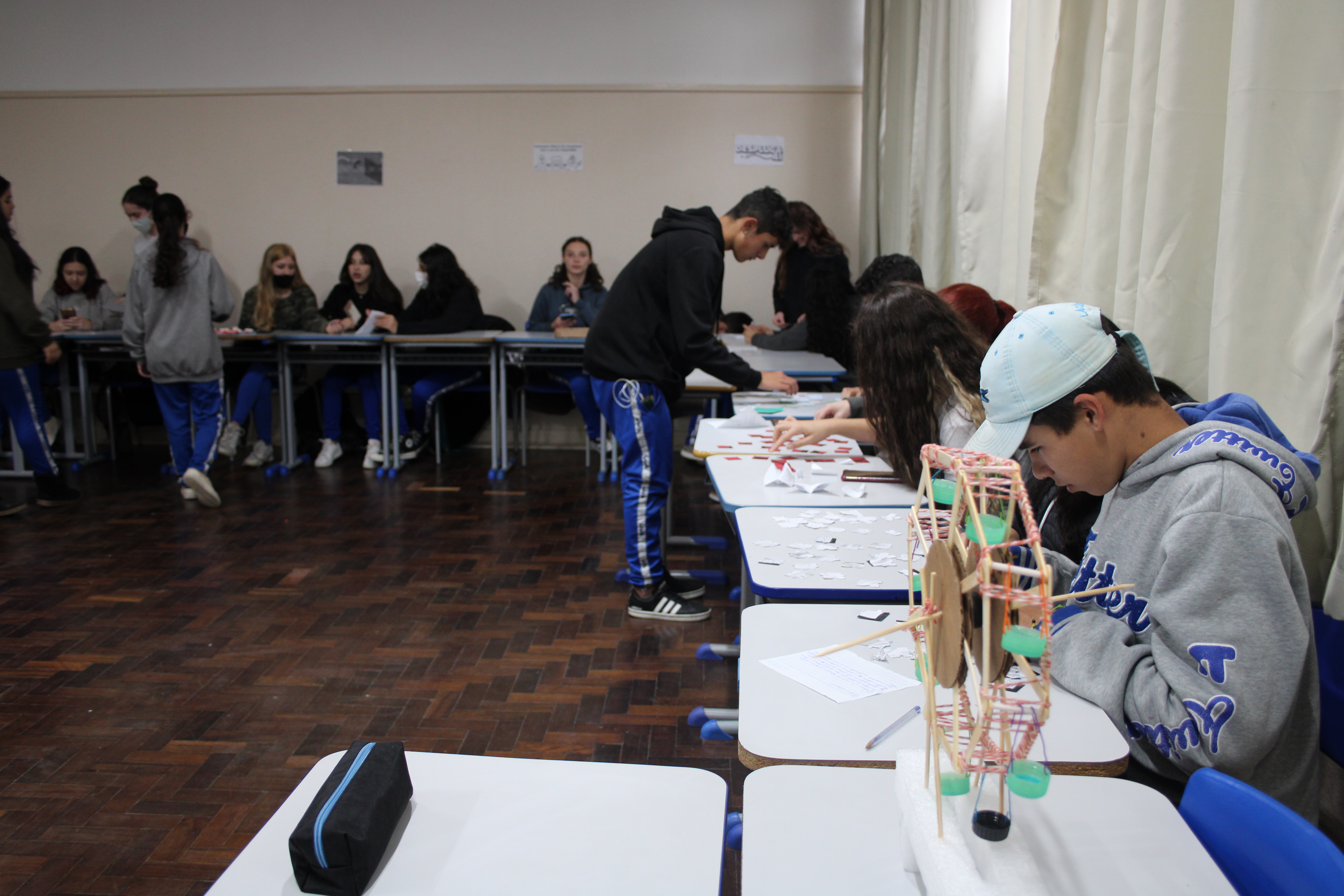 Denominada “Atividades Desplugadas”, a ação propôs que, usando materiais recicláveis, os estudantes criassem