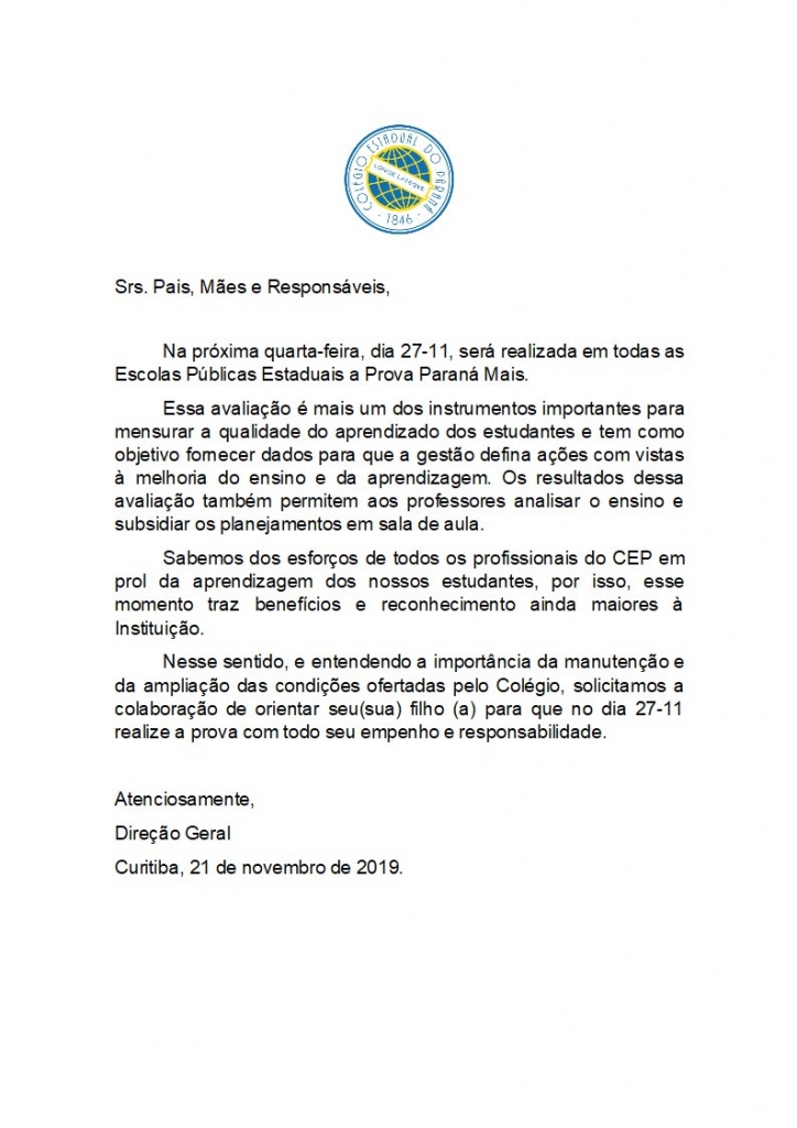 Notícias IMPORTANTE: Aviso aos Sr(a)s. Pais, Mães e Responsáveis, 28/11/2019 - 06:00 Compartilhe: Voltar Início Imprimir Baixar