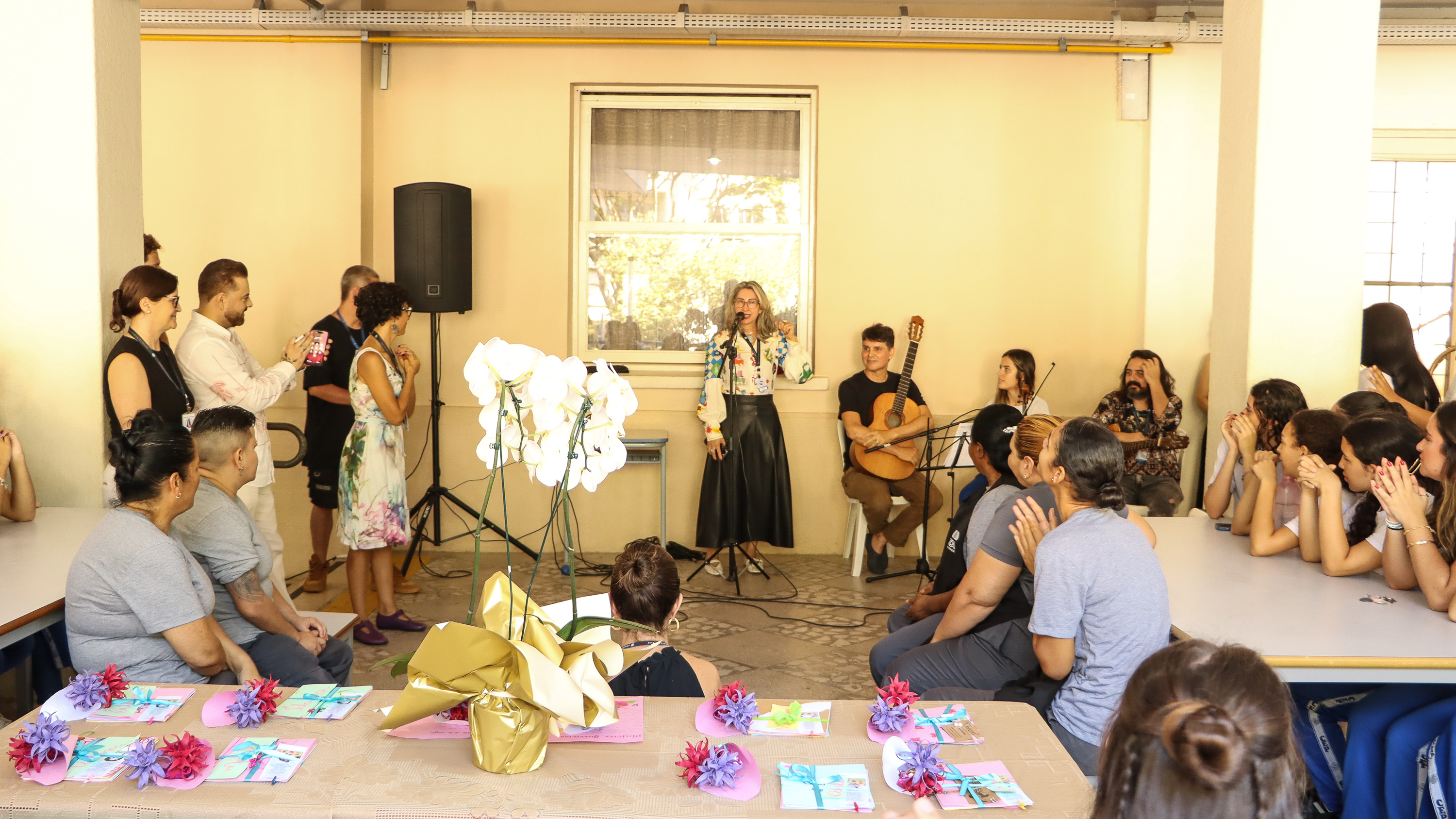 O momento foi abrilhantado pela participação dos professores Danielle Franco e Carlos, da Escolinha de Artes, e do professor João Cechella. O evento contou ainda com a presença dos estudantes do CELEM, acompanhados pela professora Giselle Ruy Bueno, que prestigiaram e enriqueceram esse momento significativo.
