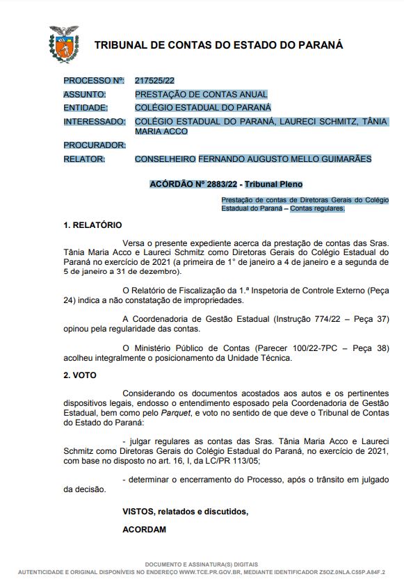 INTERESSADO: COLÉGIO ESTADUAL DO PARANÁ, LAURECI SCHMITZ, TÂNIA MARIA ACCO
