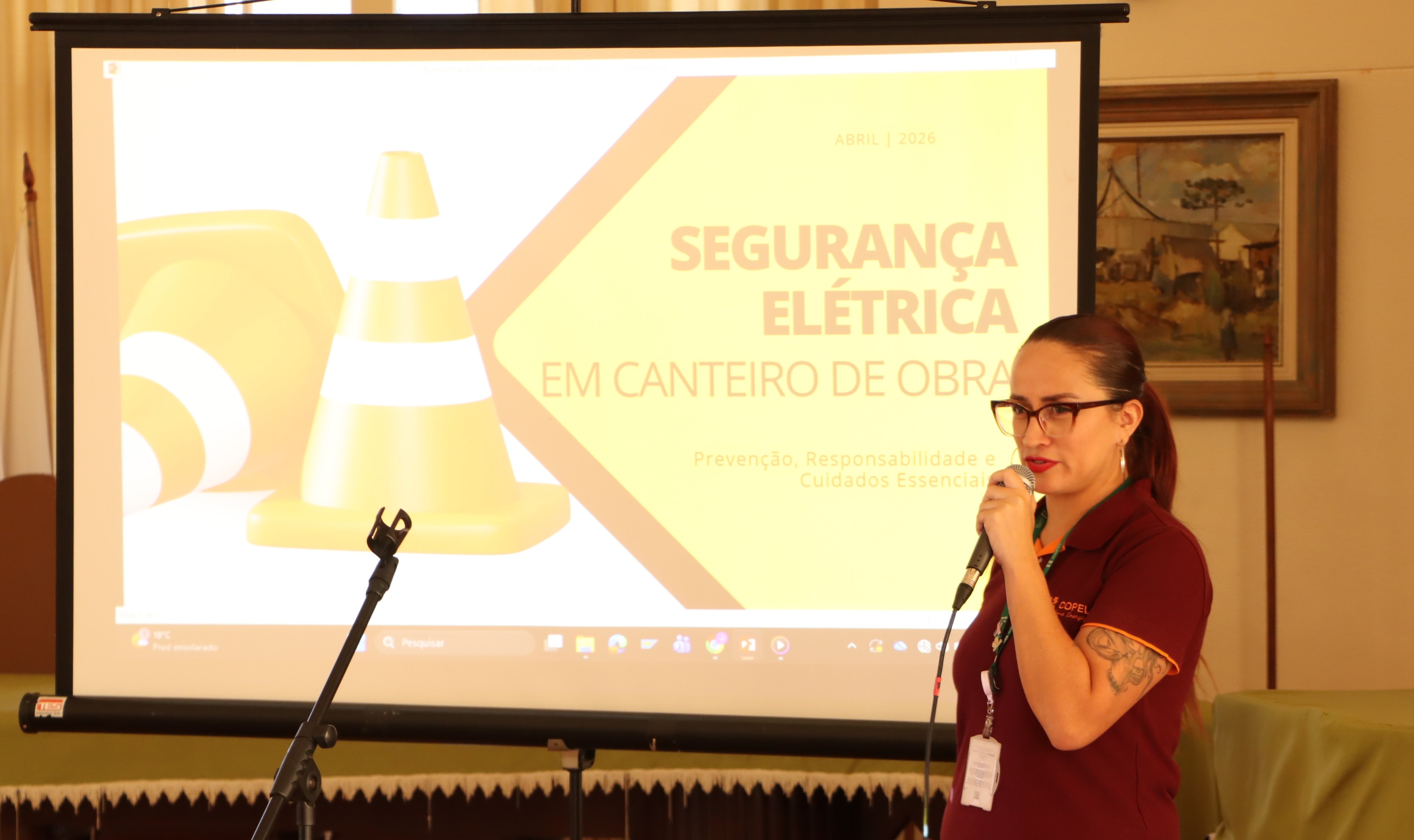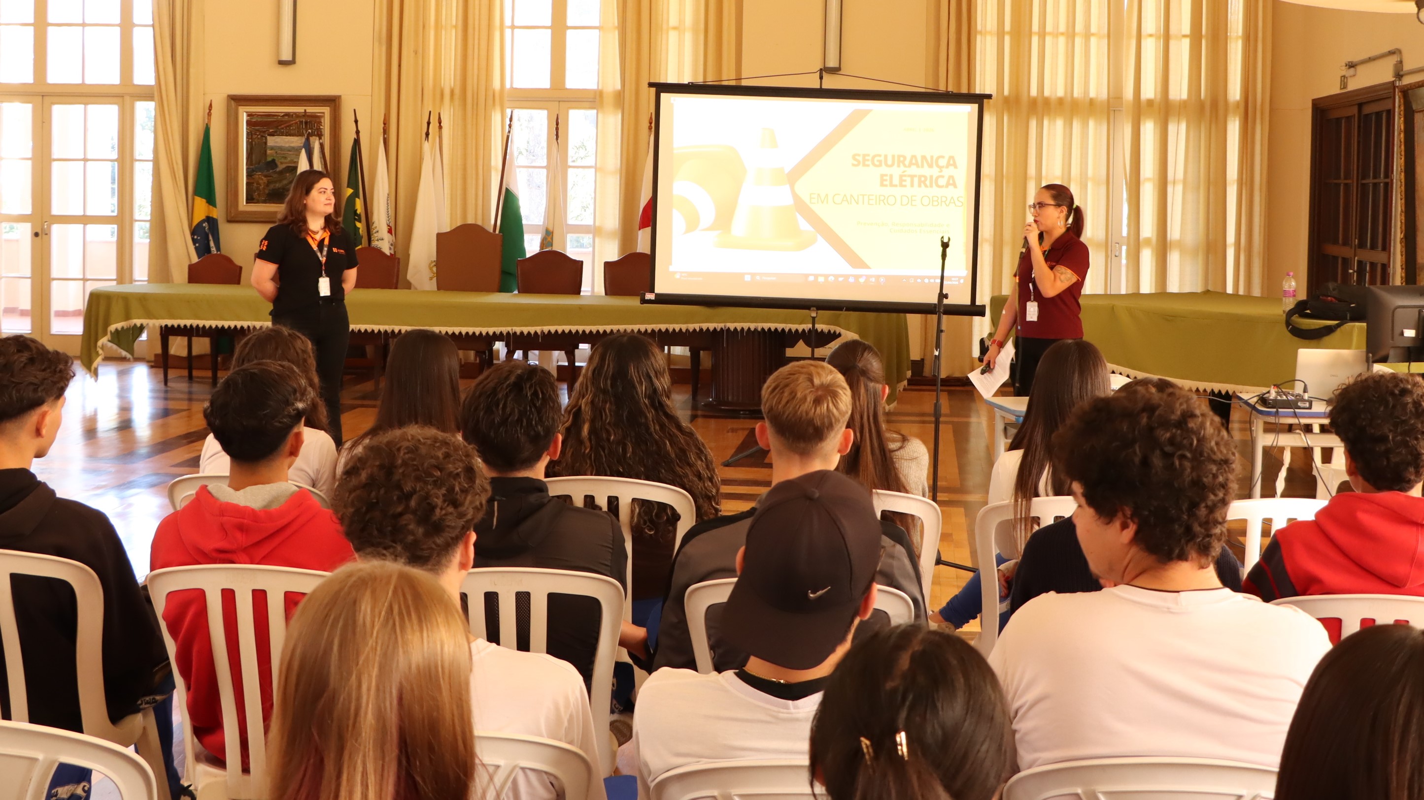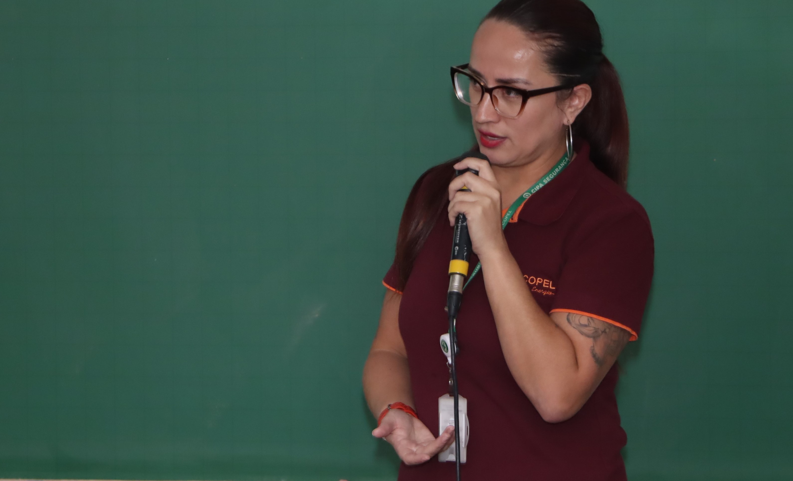 A palestrante foi Jéssica Furquim, colaboradora da Copel, integrante da CIPA e mãe de uma aluna do 3º ano do próprio curso de Edificações. Unindo sua experiência profissional ao vínculo com a escola, Jéssica conversou com aproximadamente 100 alunos dos três turnos, focando nos desafios reais que os estudantes encontrarão em breve no mercado de trabalho.