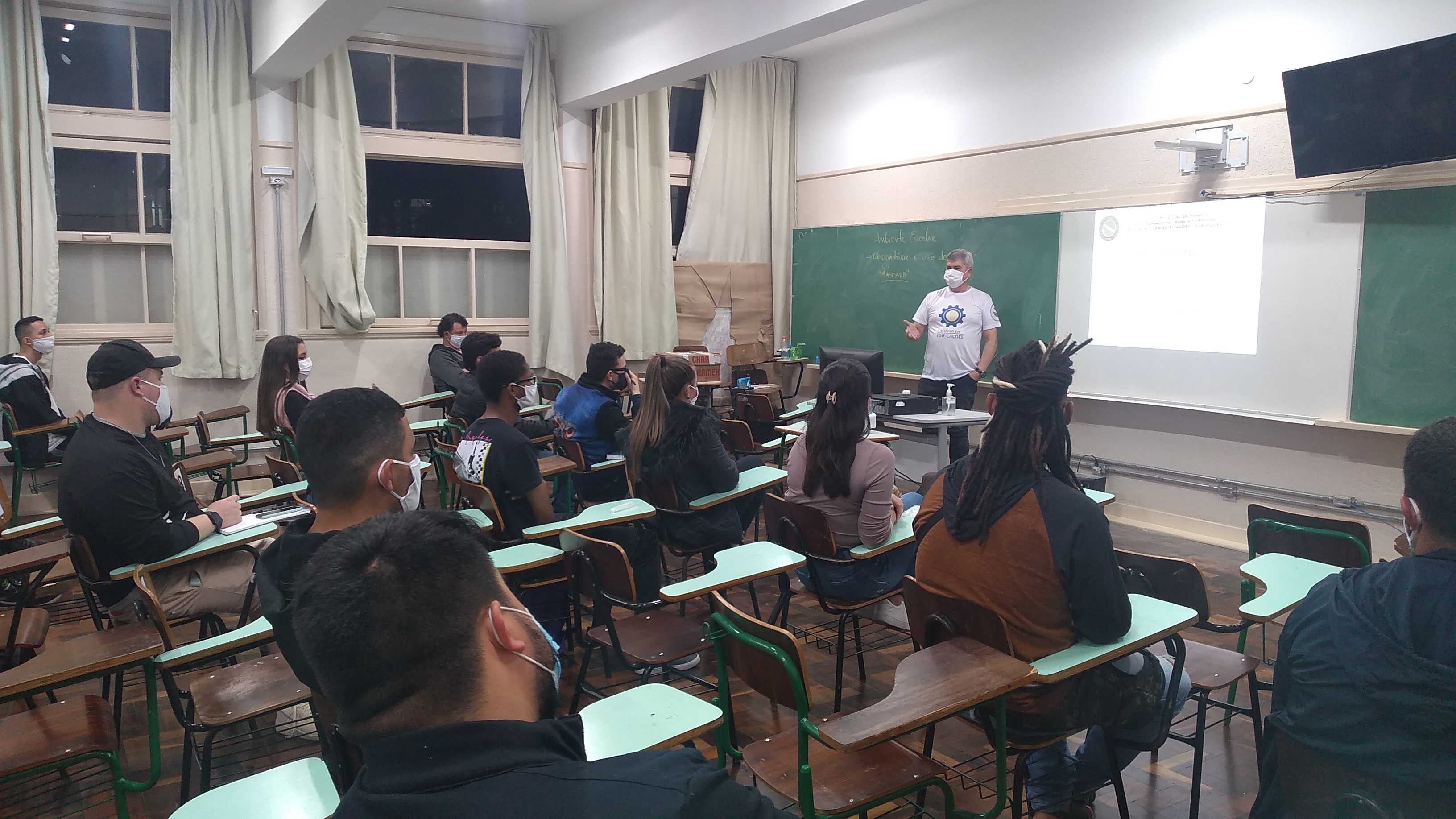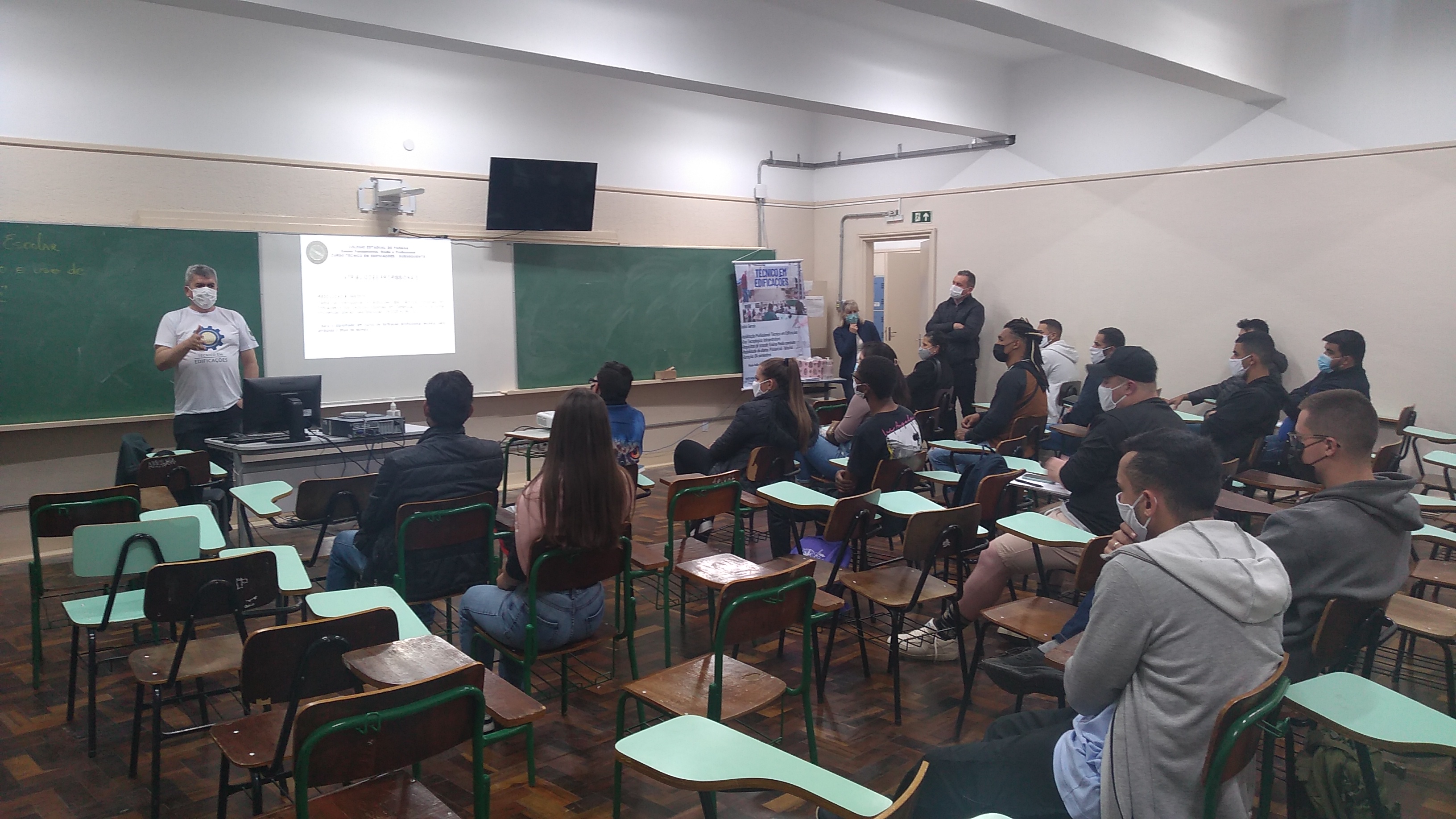 Primeiro, cada nova turma acompanhou palestra do/a coordenador/a e pedagoga/o do curso escolhido. Em