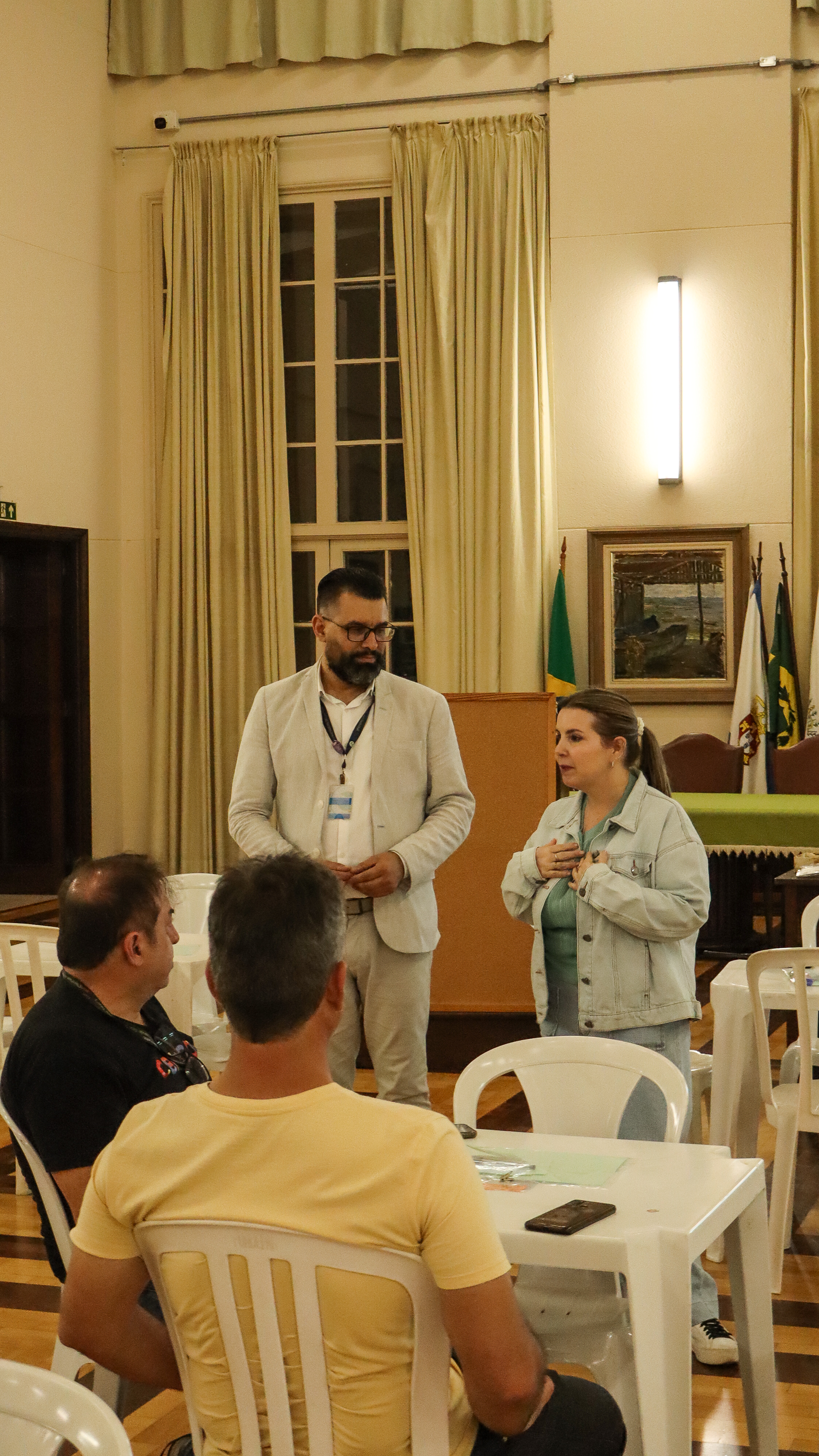 A reunião foi conduzida pelo assessor da direção geral, Alexandro Muhlstedt, pela diretora auxiliar do período noturno, Cristine Christofis, e pelas pedagogas, Percia Cicarelli e Mônica Soares.