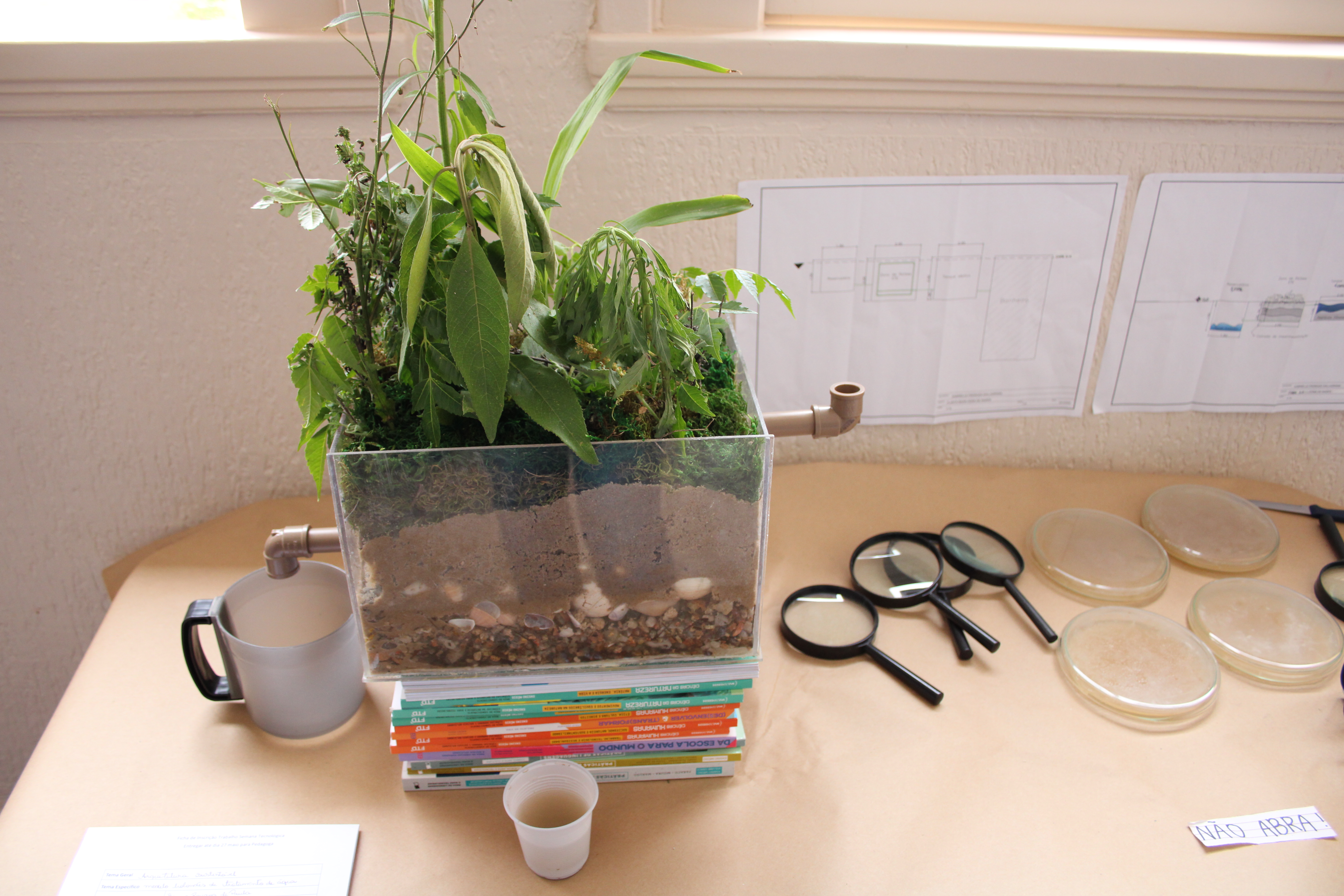 Maquetes, protótipos, instrumentos utilizados nos laboratórios, palestras e aulas especiais compuseram a