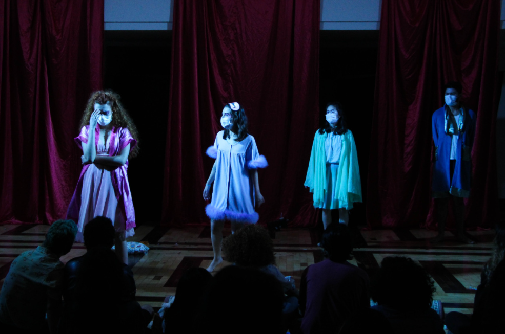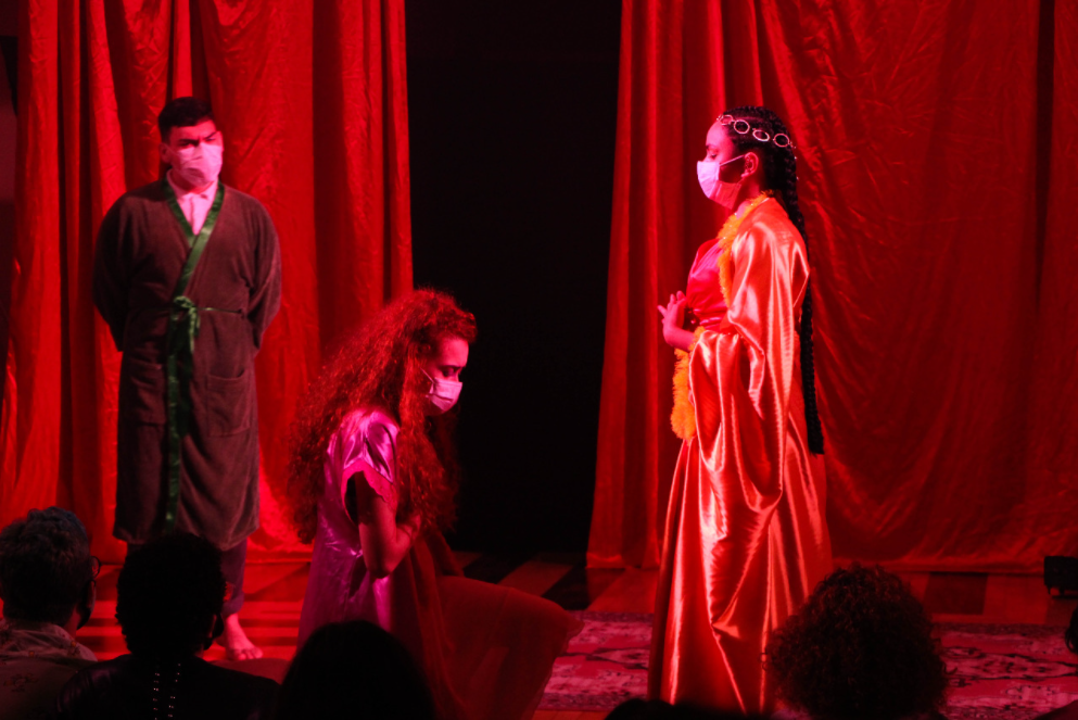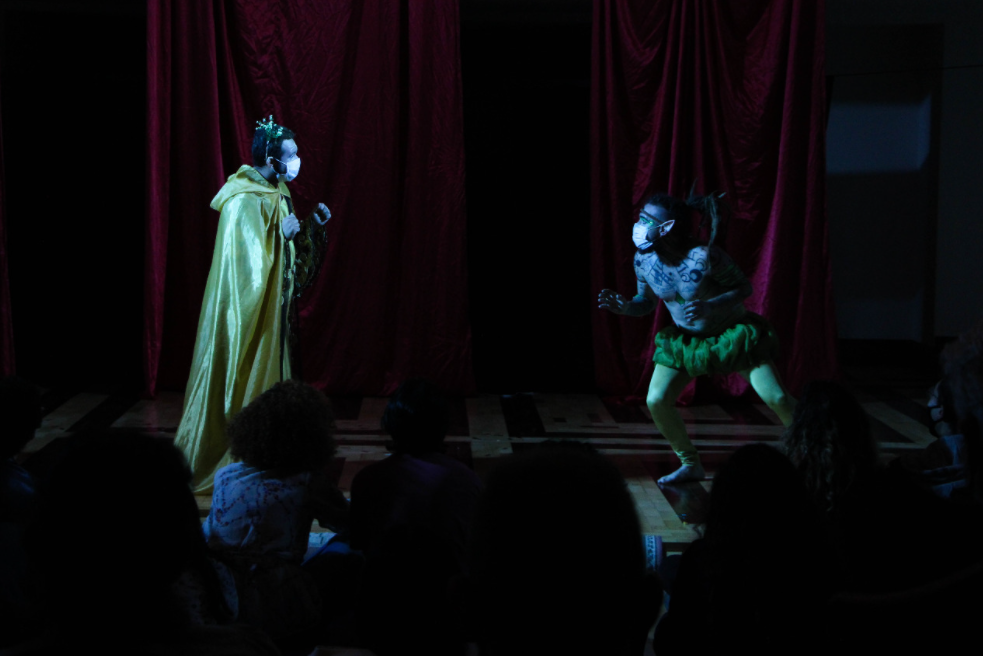 “Nós viemos de um processo em que o primeiro semestre e a metade do segundo foram on-line, de modo que é muito diferente encenar assim, afinal nós temos um palco que é muito pequeno e se resume à janela do computador. Mas eles responderam muito bem ao processo.” A professora fez questão de ressaltar ainda que “foi uma direção coletiva, não só das duas diretoras, mas de todos os professores do curso, caso contrário não conseguiríamos montar esse espetáculo em tão pouco tempo”.