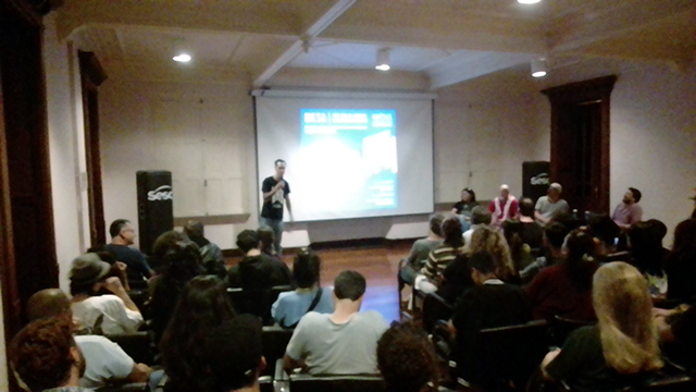 A segunda atividade acompanhada pela turma foi a palestra “Da dramaturgia à cinematografia – a visualização fotográfica desde o roteiro”, com o diretor de fotografia João Castelo Branco. A palestra ocorreu no Cine Passeio, na quinta, dia 8.